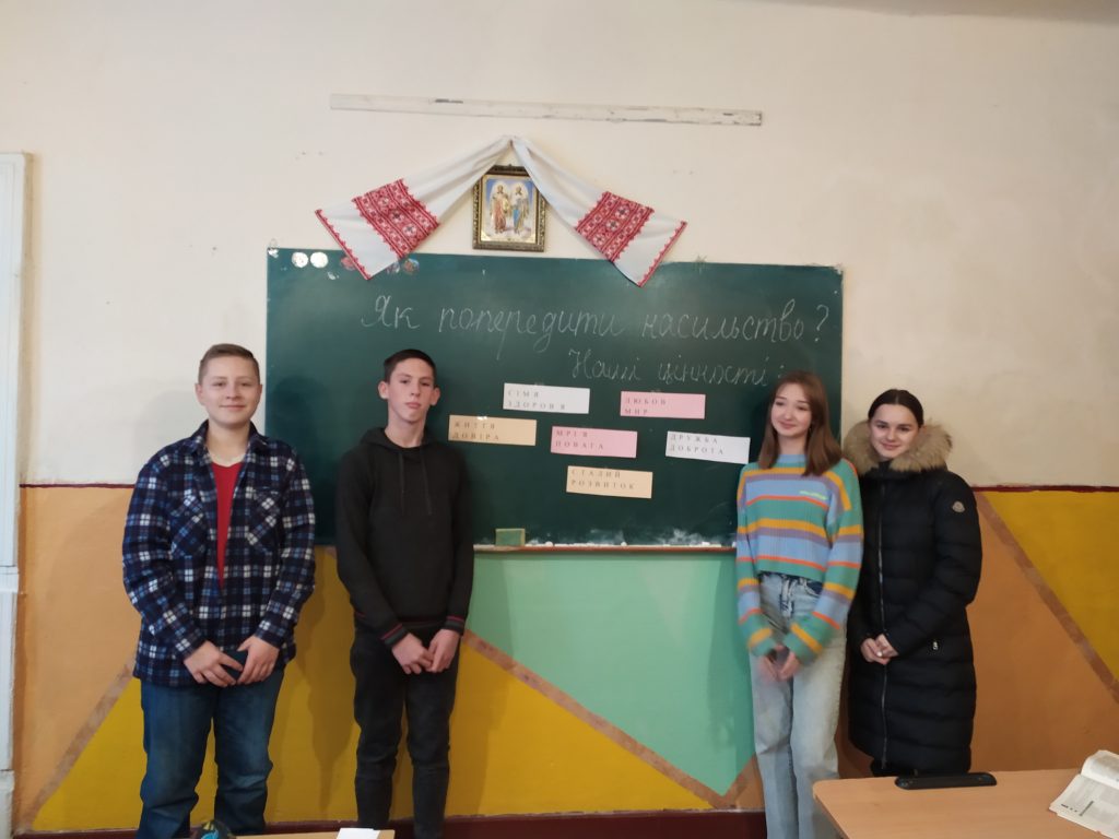29 листопада в Суховільському ліцеї з учнями 9-Б класу психологічна служба (Юрчишин Л.С., Панько Н.Р.) провела профілактичне заняття «Як попередити насильство?» в рамках Всеукраїнської кампанії «16 днів проти насильства».