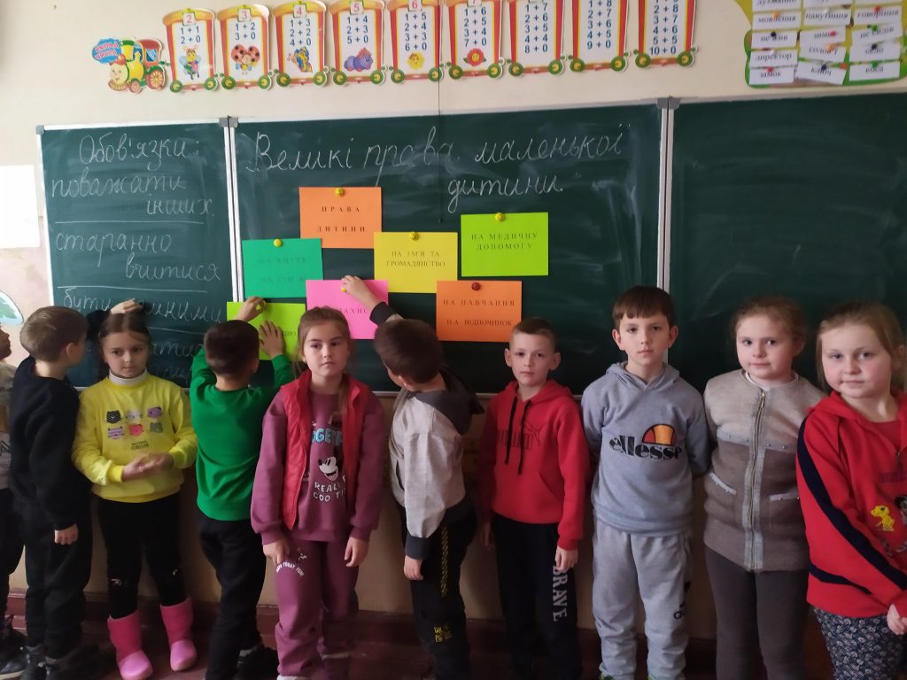 Психологічна служба пояснила учням зміст понять «права» та «обов’язки», звернула увагу, що завжди потрібно захищати свої права. На занятті другокласники активно виконували вправи «Знайомство», «Компліменти», «Мені подобається…», а також розмальовували замальовки на тему прав дитини.