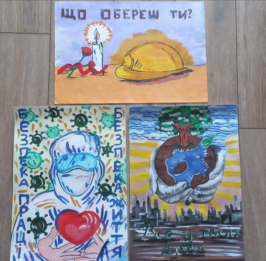 Учні 5 -7 класів ліцею під керівництвом учителя образотворчого мистецтва Козак Стефанії Орестівни підготували виставку до Дня охорони праці, який відзначають щорічно28 квітня. Цей конкурс дитячого малюнка проводиться з метою привернення уваги суспільства до існуючих проблем у сфері охорони праці та виховання високої культури безпеки праці серед дітей та юнацтва, а також для сприяння розвитку дитячої творчості й підтримки талановитої молоді.