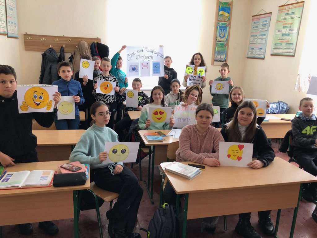 Сьогодні, 7 лютого у Суховільському ліцеї вчитель фізики, класний керівник 6-А класу провела виховний захід зі своїми вихованцями, спрямований на розвиток мислення та вміння користуватися Інтернетом без ризиків та небезпечних ситуацій, що виникають при цьому. Діти прослухали, що може трапитись в реальному житті через безтурботну віртуальну поведінку, а також самі розповідали правила роботи в мережах. Наприкінці заняття діти намалювали і показали їхні улюблені смайлики, що виражають емоції та почуття.