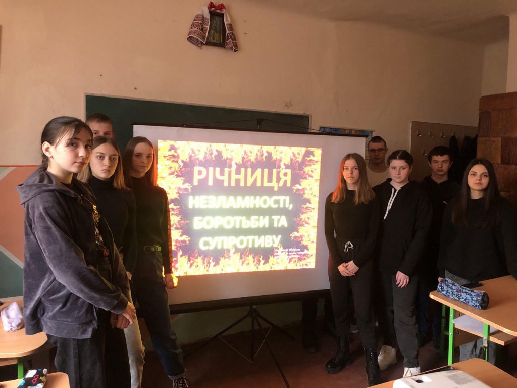 У Суховільському ліцеї до річниці повномаштабного вторгнення російських військ відбувся виховний захід на тему “ Річниця незламності, боротьби та супротиву”, учнями 10-Б класу та класним керівником Тільтін І.М.