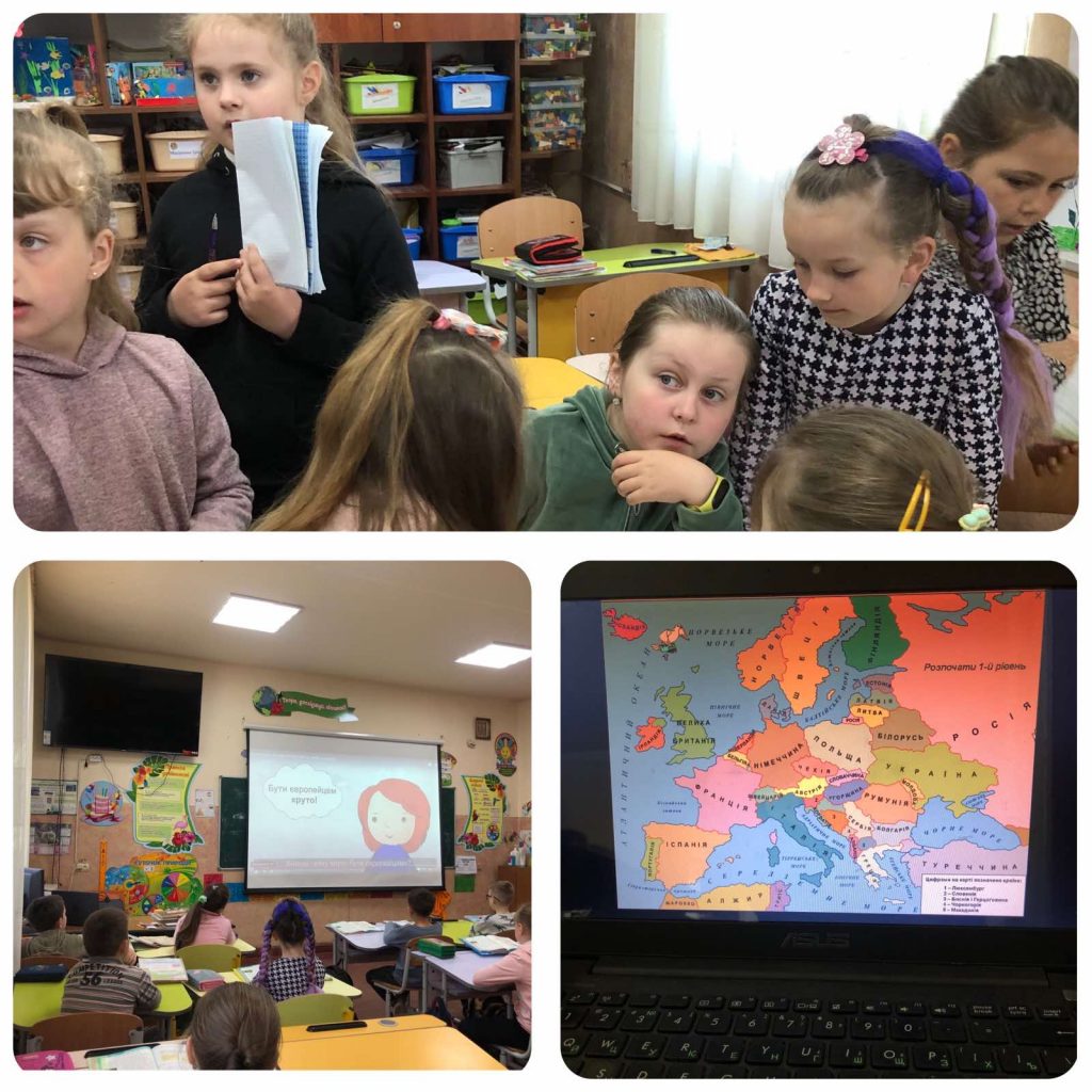 Учні 2-Б класу Суховільського ліцею (кл. керівник Барна О.М.) сьогодні переглядали фільм «Приєднуйся до європейців! Знаєш, чому це круто?», взяли участь у вікторині «День Європи», а також напередодні вивчали карту Європи з допомогою програмного забезпечення “Сходинки до інформатики».