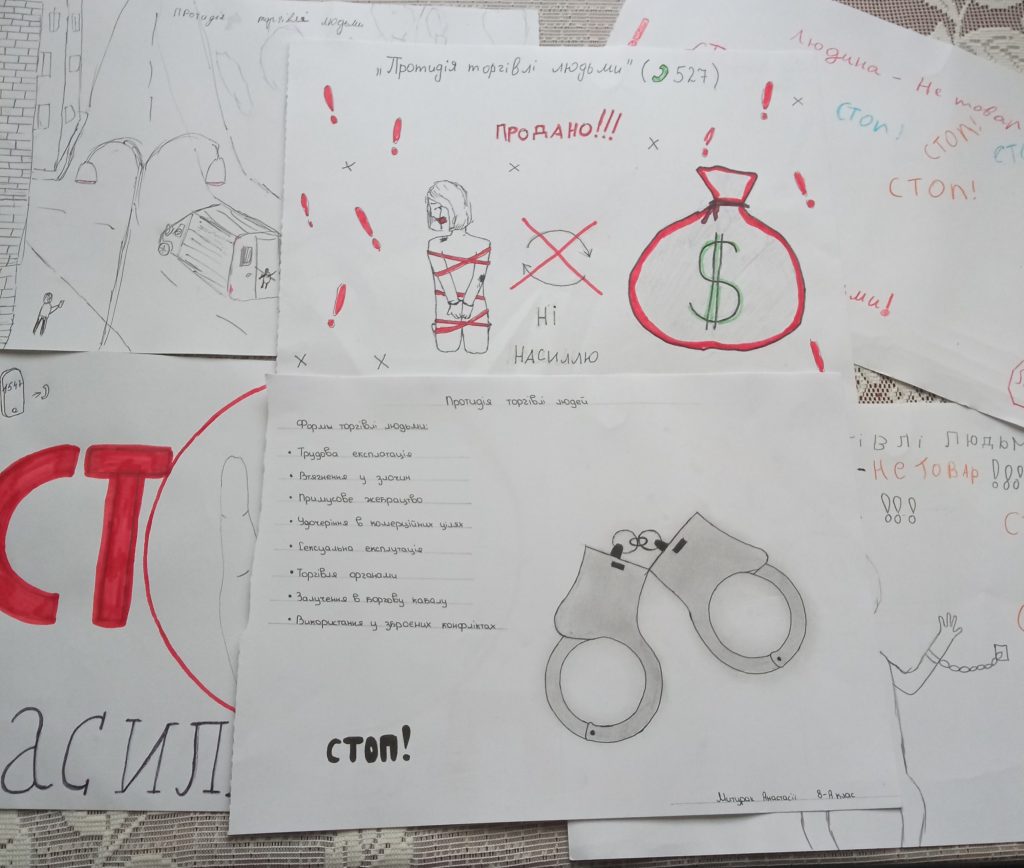 18 жовтня в Європа відзначає День протидії торгівлі людьми. Звичайно ми не могли оминути цю важливу тему, яка дуже гостро відчувається зараз, коли мільйони українців вимушено покинули свої домівки через повномасштабне вторгнення рф. Сьогодні восьмикласники Суховільського ліцею обговорювали як не стати жертвою злочинців, розпізнати небезпеку та як поводитись, коли ти мимоволі стаєш свідком протиправних дій. Урок вийшов жвавим і пізнавальним. На пам’ять учні намалювали постери та записали телефони, куди першочергово звертатись у разі небезпеки.
