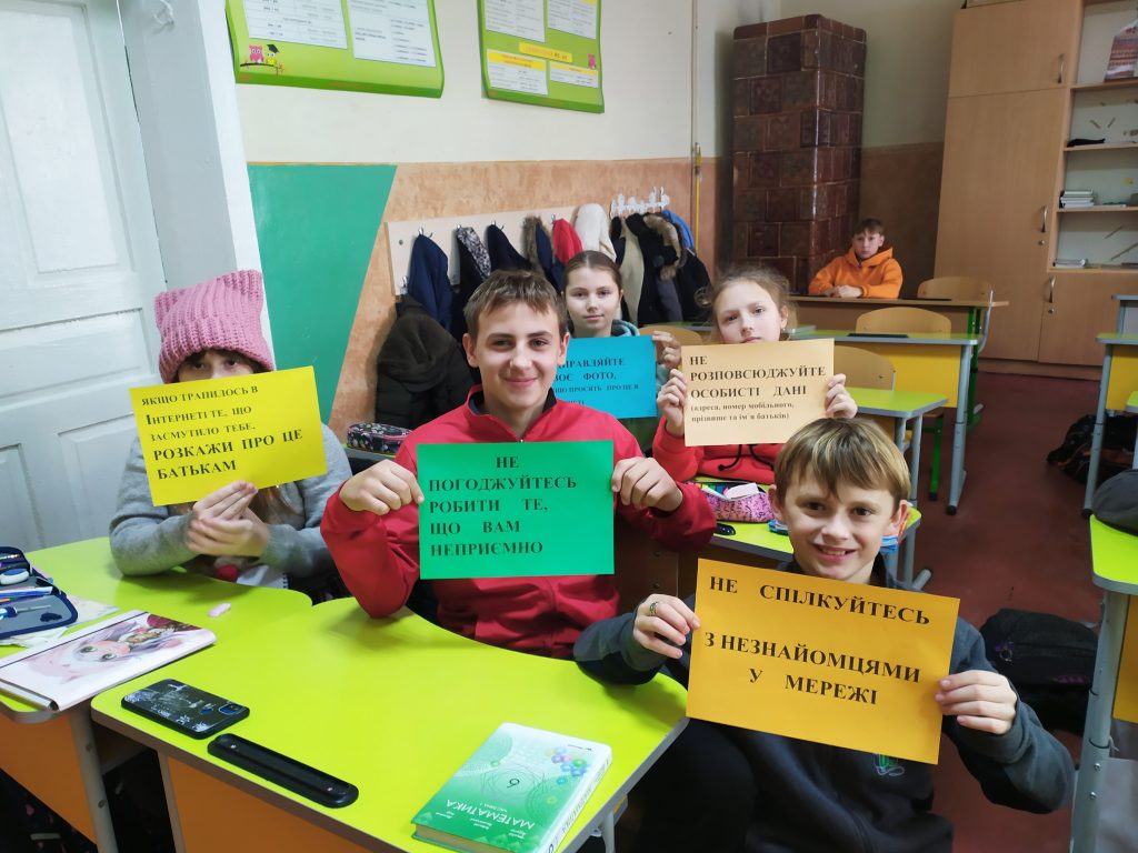 Психологічна служба пояснила учням, що кібербулінгом називається цькування та утиск в соцмережах. Діти більше дізнались про ризики та небезпеки у віртуальному світі, пригадали зміст поняття «приватність», разом склали правила безпечної поведінки в інтернеті.