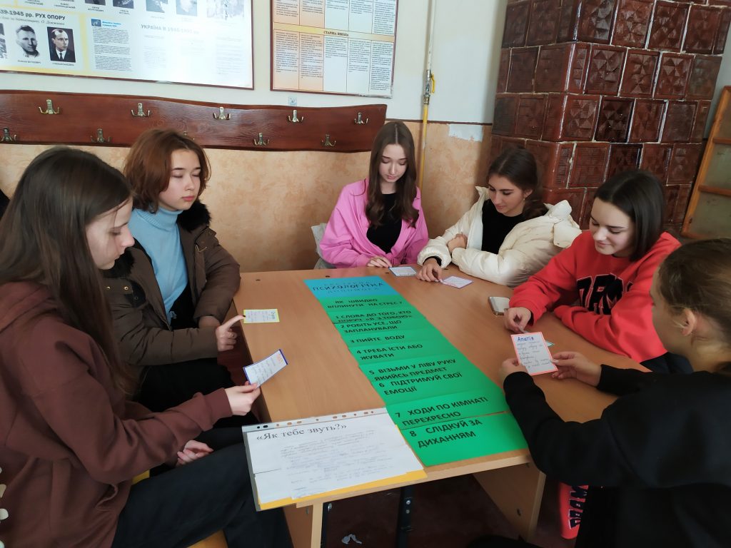 Вчитель наголосила учням, що у даний час важливо вміти надавати психологічну самодопомогу та взаємодопомогу, оскільки це вміння є складовою життєзбережувальної компетентності.