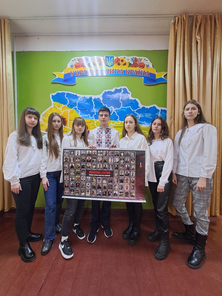 Учні 11-А класу провели виховний захід «Залишаємося гідними своїх героїв!». Революція Гідності змінила нас назавжди. Ми стали нацією, гідною жити в незалежній вільній державі.