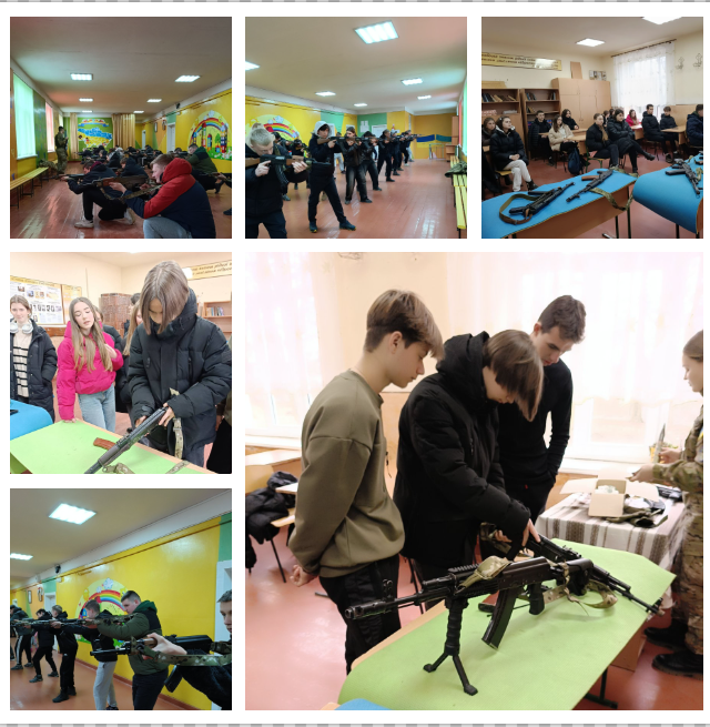 Сьогодні до нашого ліцею завітали представники КЗ «НТЦНС «Сокіл». Інструктори «Гроза», «Бурий» та «Бункер» провели заняття зі старшокласниками з навичок тактичної підготовки: правила поводження зі стрілецькою зброєю, способи носіння, вогневі стійки, зміни напрямків. Також учні дізналися про тактико-технічні характеристики АК, історію створення, неповне розбирання і неповне збирання АК.