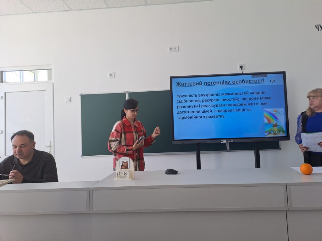 На психолого-педагогічному семінарі вчителі більше дізнались про основні складові життєвого потенціалу, обговорили проблеми та бар’єри, які заважають розвитку потенціалу, поділились думками про те, як можна розкрити внутрішні ресурси особистості, розвинути життєстійкість та сприяти творчому самовираженню здобувачів освіти.